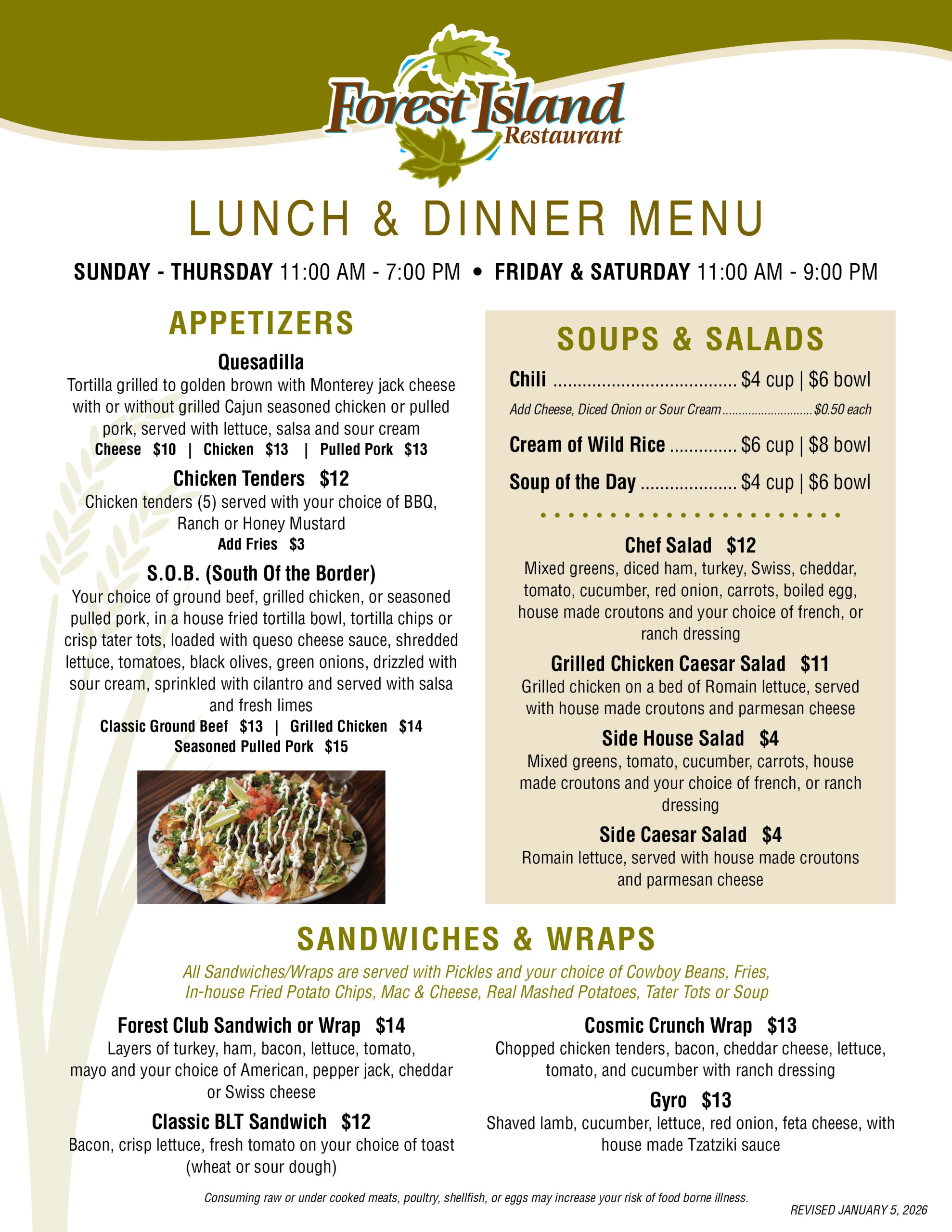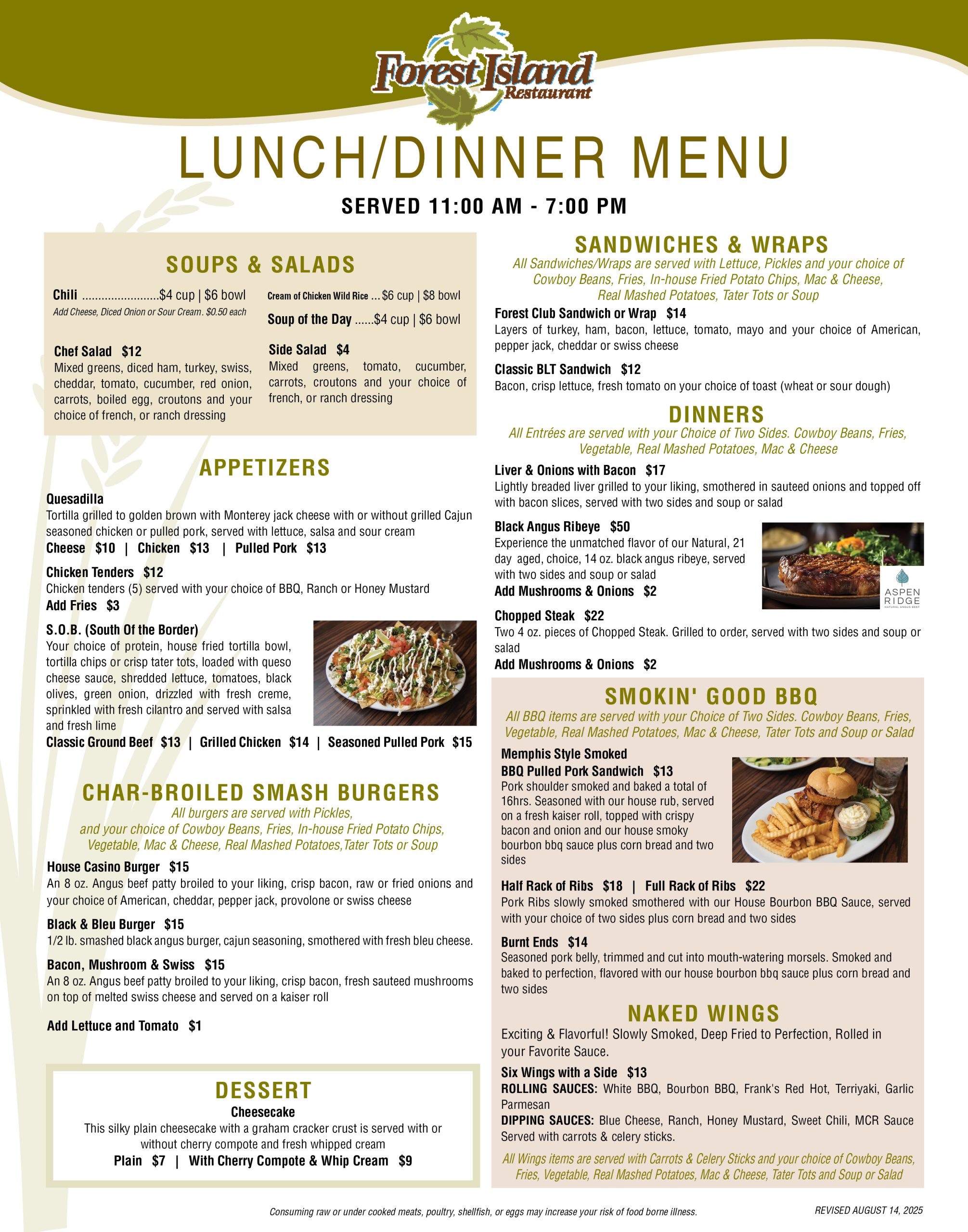 LUNCH AND DINNER OPTIONS.