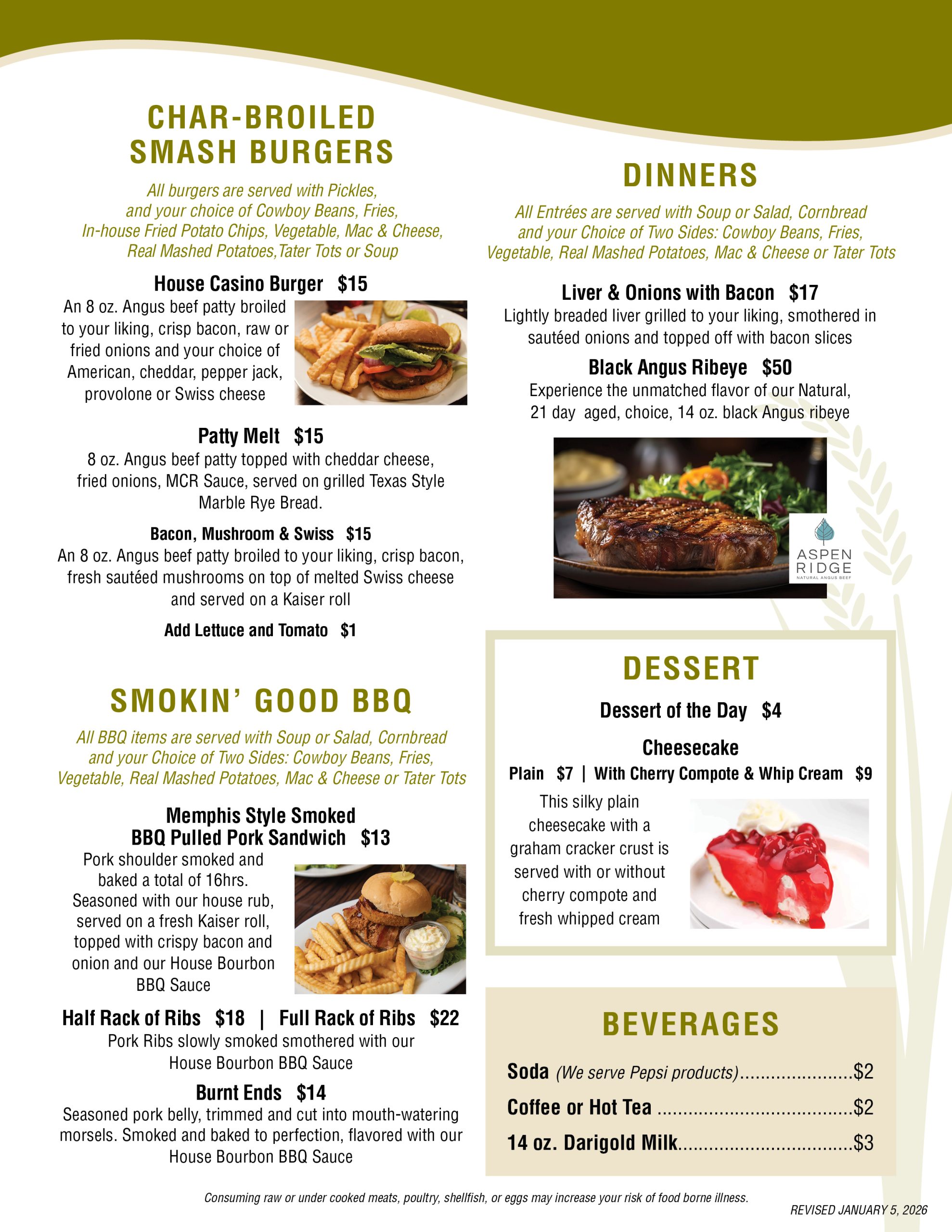 Casino: mon – Thur • 12pm – 10pm